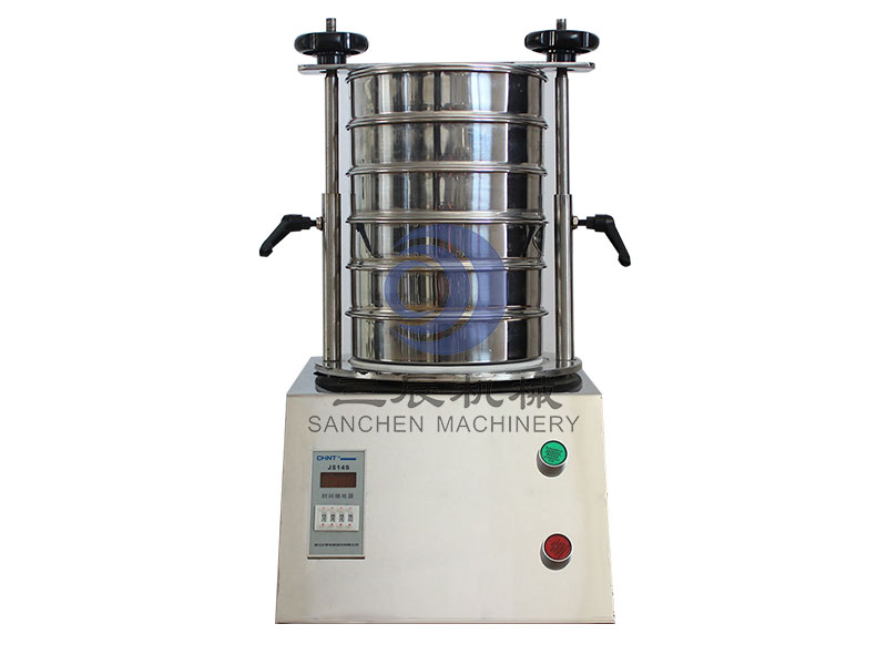 采用立式振動電機作為整機振動源,通過振動電機帶動上部振動盤振動,在通過振動盤傳導至安放在振動盤上部的篩框上,然后由需要檢測目數的篩框把小于篩網孔徑的物料篩分至下層篩框,如此層層篩選,使篩框中的物料能非常有效的起到過濾分級、檢測目的。具有定時自動關機、可確保試驗重復性,功能全面,操作簡單的粒度分析儀器,可將一種顆粒料同時精密分出2-7個粒度段,具有噪音小、重量輕、平臺操作無須固定等特點。